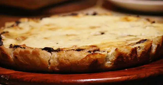 Täidise jaoks tükeldada sibulad ja koorida küüslaugud, praadida sibul õlis klaasjaks, lisada küüslauk, siis balsamico, suhkur ja maitseained: sool-pipar-tüümian, kuumutada kuni hakkab karamelliseks muutuma. Valada sibula segu eelküpsetatud põhjale.
